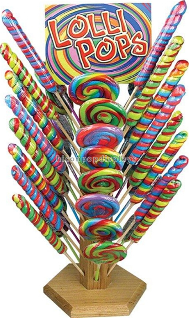 The wood display stand is free design by Hicon to meet the commercial needs of selling lollipop.