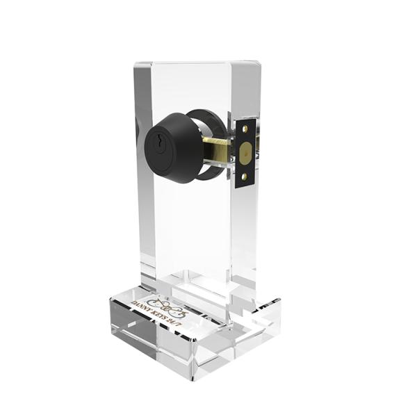 This deadbolt display stand is made of clear acrylic which is really nice to see the constructions of the deadbolt, it is helpful for buyers to make the choice. In order to give a better experience to shoppers, we made the acrylic like a door panel, it gives a direct review for shoppers to see what the lock on their looks like. Besides, to protect shoppers, all the corners are round without any scratches.